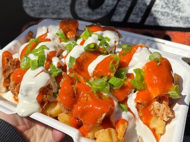 Crispy buttermilk chicken smothered with buffalo sauce, blue cheese, scallions over fries